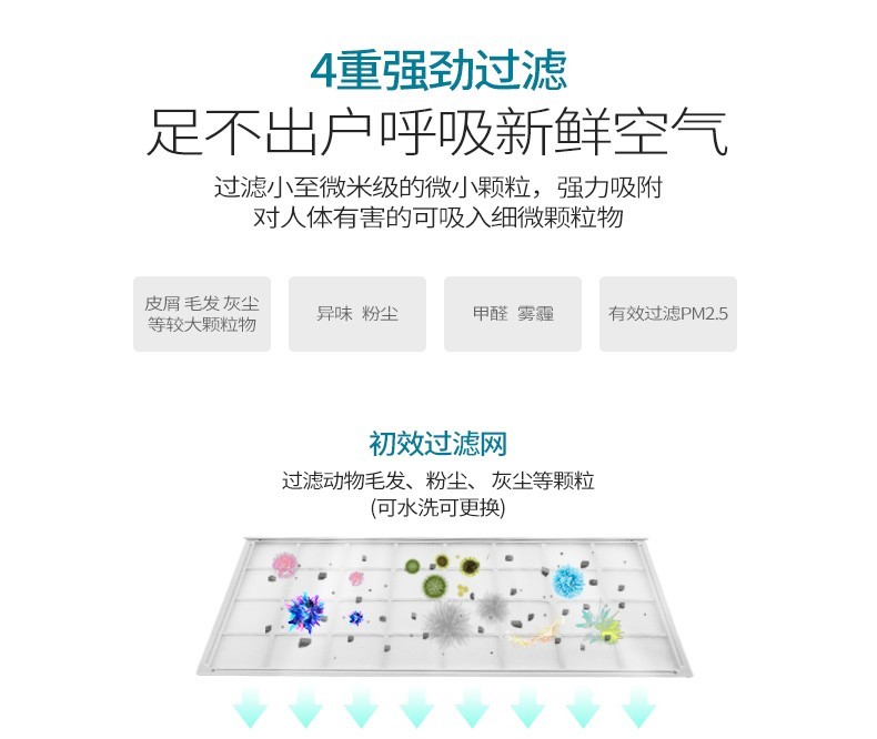 4、五檔風速,開蓋斷電,四重過濾,H13級過濾,過濾效率達99%以上